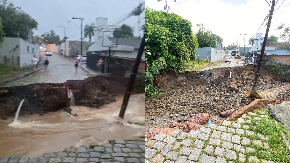 Já na Rua 2 de Setembro o problema é antigo. Moradores relatam que o buraco se formou há mais de três anos e, com a tempestade de quinta, a questão piorou. A rede de água rompeu e também está sendo consertada pelo Samae — com previsão de término para o final da manhã. Os novos deslizamentos fizeram a cratera aumentar e, assim, um trecho do corredor de ônibus precisou ser interditado. Tal como no bloqueio na Itoupava Seca, não há prazo para o reparo completo ser feito.