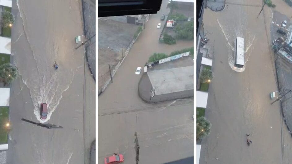 O temporal da tarde desta sexta-feira (13) pegou alguns motoristas de surpresa em Blumenau. Imagens compartilhadas nas redes sociais mostram veículos no meio de ruas tomadas pelas águas. A chuva começou por volta das 16h e, passada uma hora, as regiões do Passo Manso e Coripós tinham registrado os maiores volumes, de acordo com os dados do site AlertaBlu, da prefeitura.