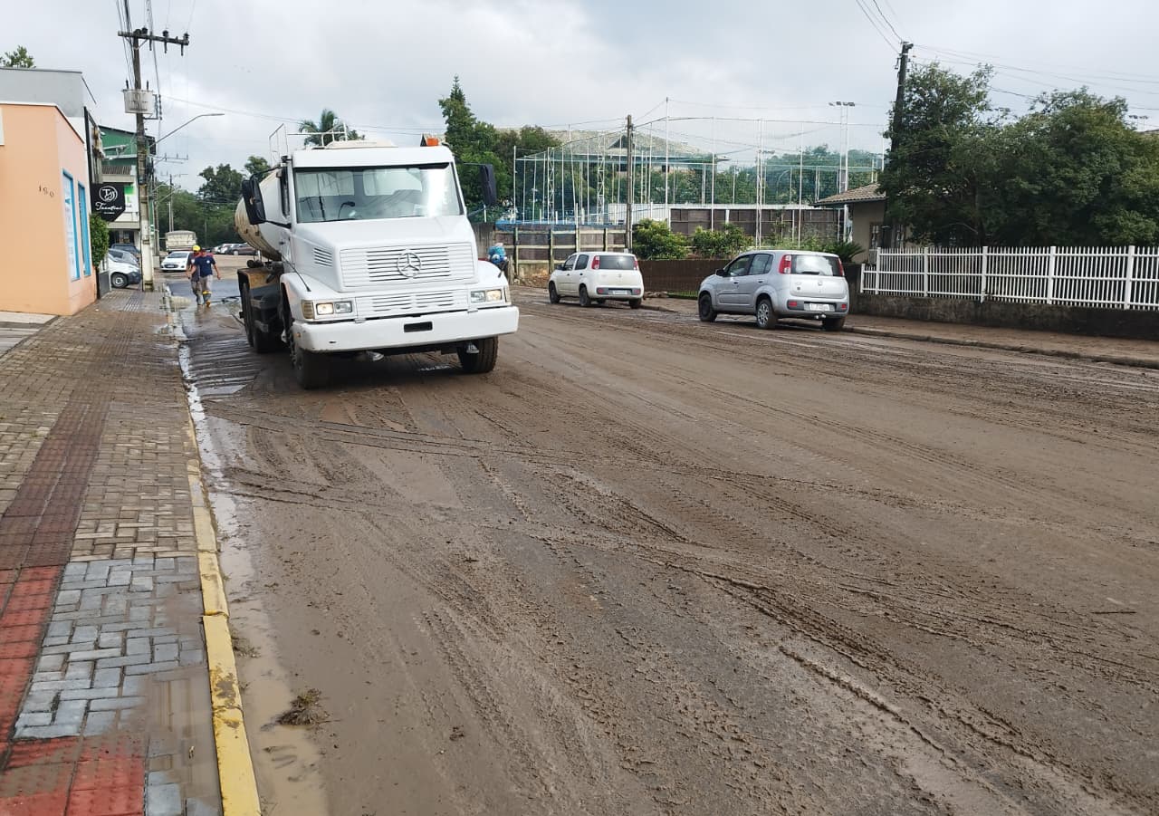 Na manhã desta segunda-feira (23), caminhões do município e moradores trabalham para limpar o barro que o fenômeno carregou para as vias e terrenos. Além, claro, da água acumulada. No geral, o nível baixou nas áreas públicas ainda na madrugada.