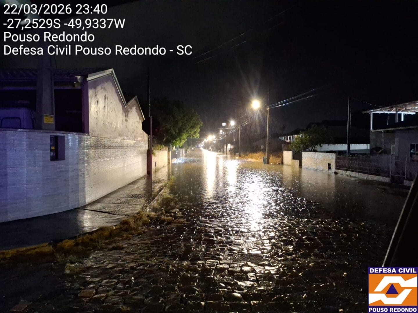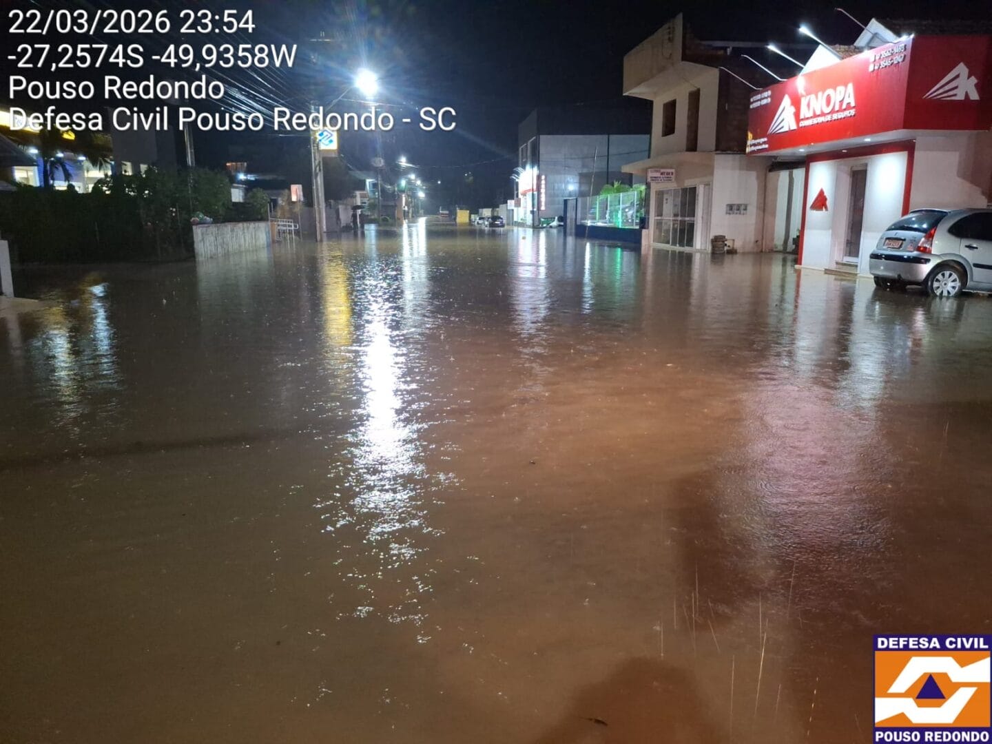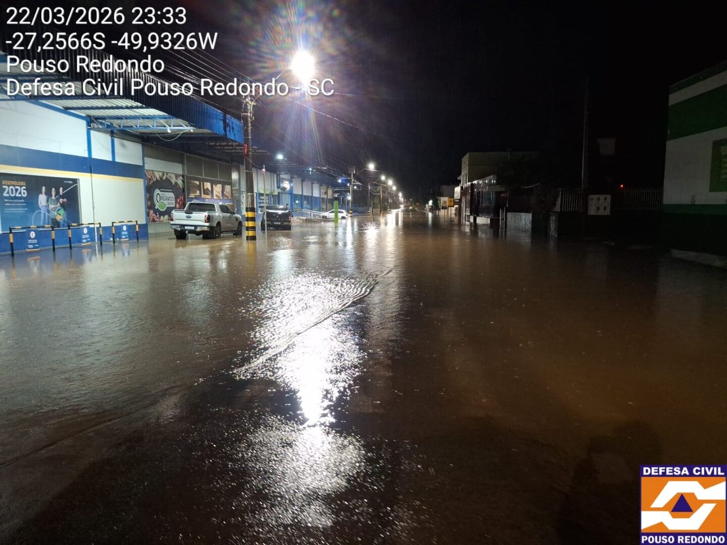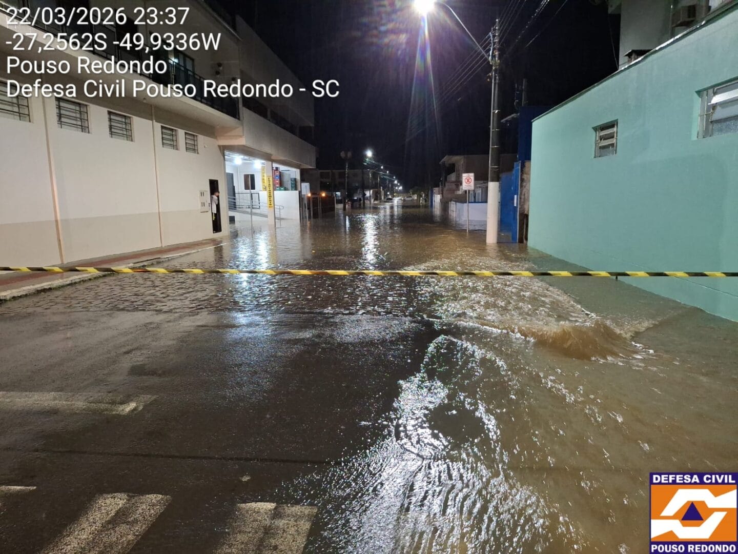 Moradores de Pouso Redondo, no Alto Vale do Itajaí, viram a cidade ser castigada pela chuva na noite deste domingo (22). No total, choveu em apenas uma hora o esperado para praticamente todo o mês de março. Ao menos duas pessoas tiveram de sair de casa e recorrer à Defesa Civil devido aos alagamentos, que também transformaram ruas em rios.