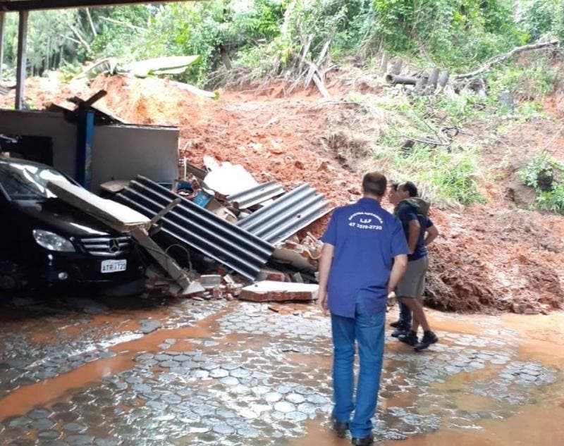 As chuvas constantes em Blumenau já causam 58 deslizamentos de terra e e 11 quedas de árvore até a tarde desta quinta-feira (21). Ao todo, 90 ocorrências já foram registradas devido ao volume de chuva que caiu na cidade. Até o início da tarde desta quinta, o caso mais grave foi registrado no fim da tarde desta quarta-feira (20), quando um deslizamento de terra atingiu os fundos de uma oficina localizada na Rua Johann Sachse, no bairro Badenfurt