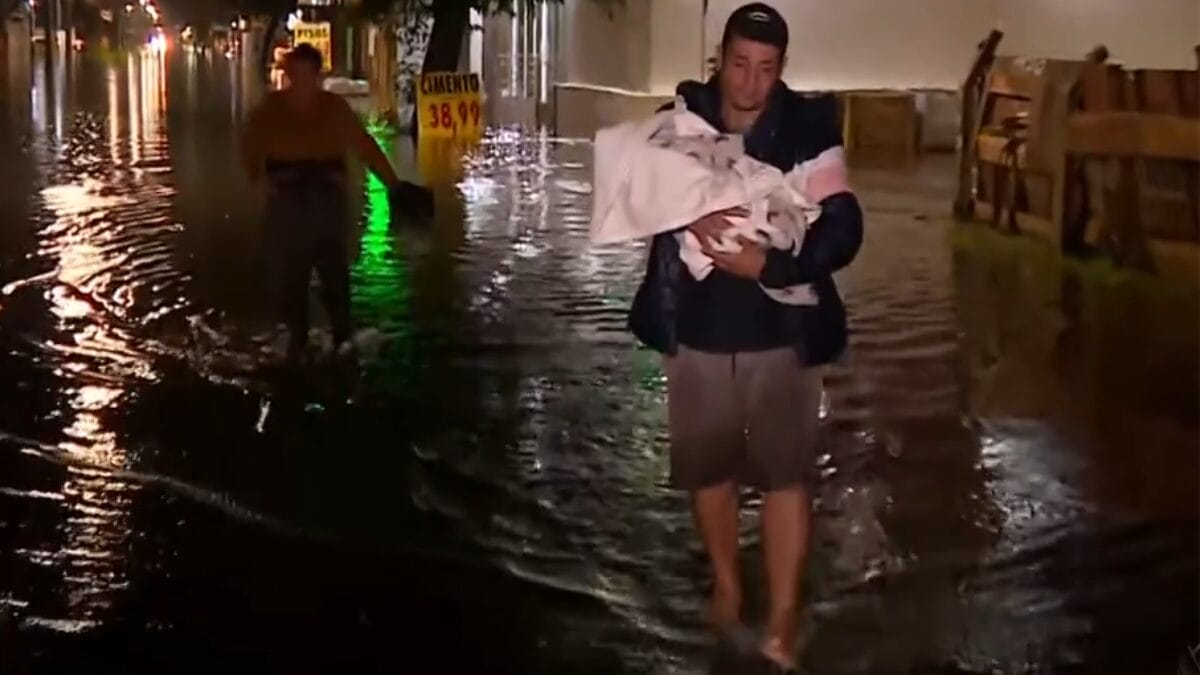 — Saímos de casa porque alagou tudo, perdemos tudo de novo. Estou eu, minha esposa e minha nenezinha — disse o trabalhador autônomo André Wagner Trindade, que andava pela rua com água na altura da janela.