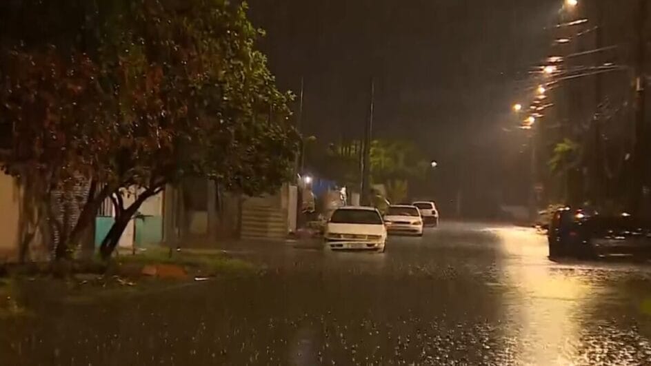 A prefeitura divulgou que a água da chuva acumulada nas ruas não está escoando pelos bueiros – e que as casas de bombas estão em funcionamento.