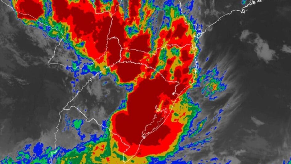 Já no domingo (11), a atuação conjunta da frente fria e do ciclone repete o cenário de dia instável, ainda que em menor intensidade. Os temporais podem ocorrer de forma isolada, com pancadas de chuva. O ciclone se desloca em direção ao mar, o que faz com que o transporte e a disponibilidade da umidade aumentam, junto com a atuação da frente fria no final do dia.