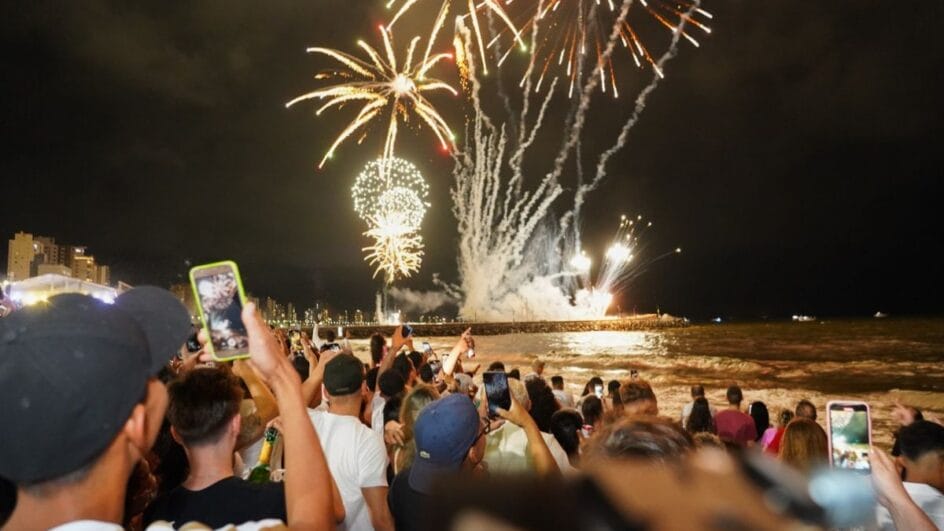 O show pirotécnico de 15 minutos nos dois molhes do Centro ocorre na descida da Rua 700 e descida da Avenida Getúlio Vargas. No bairro Itacolomi serão 5 minutos entre as ruas 4350 e Rua 4450. A cidade promete um espetáculo de luzes, que será o grande destaque da virada, encantando moradores e turistas com uma celebração mágica à beira-mar.