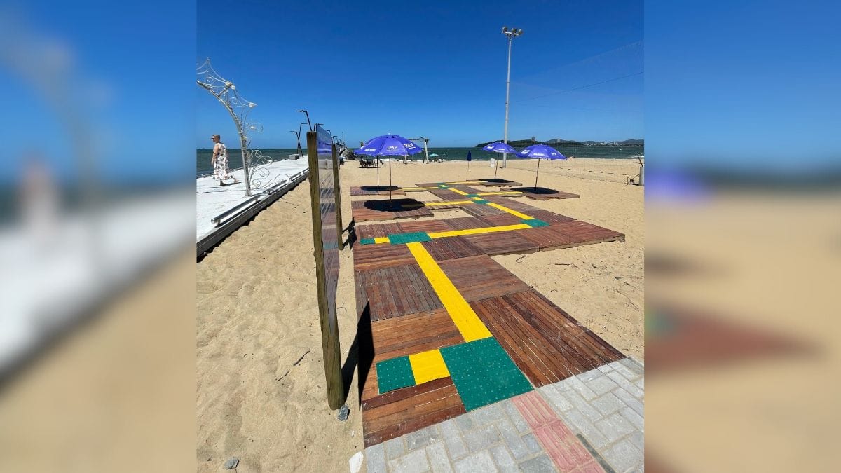 No espaço, os banhistas encontram um deck de madeira na areia que permite, por exemplo, o uso de cadeiras de rodas e facilita a circulação de pessoas com mobilidade reduzida. Além disso, o local também conta com guarda-sóis gratuitos, cadeira anfíbia, conforme a imagem da galeria, e um profissional sempre presente para auxiliar os visitantes.