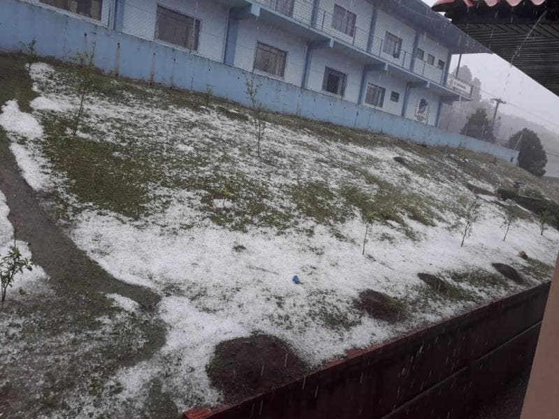 Na região Norte, a cidade de Canoinhas ficou com o chão coberto de gelo em bairros como o Piedade, onde os moradores filmaram e tiraram fotos do granizo.