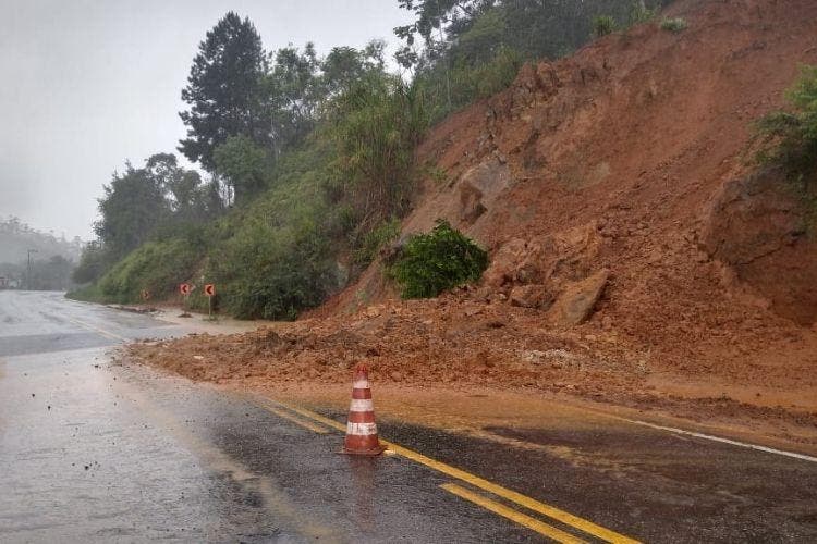 Em Guaramirim, Norte de SC, o Km 35 da SC-108 ficou parcialmente interditado após a queda de uma barreira. A rodovia foi liberada por volta das 13h.