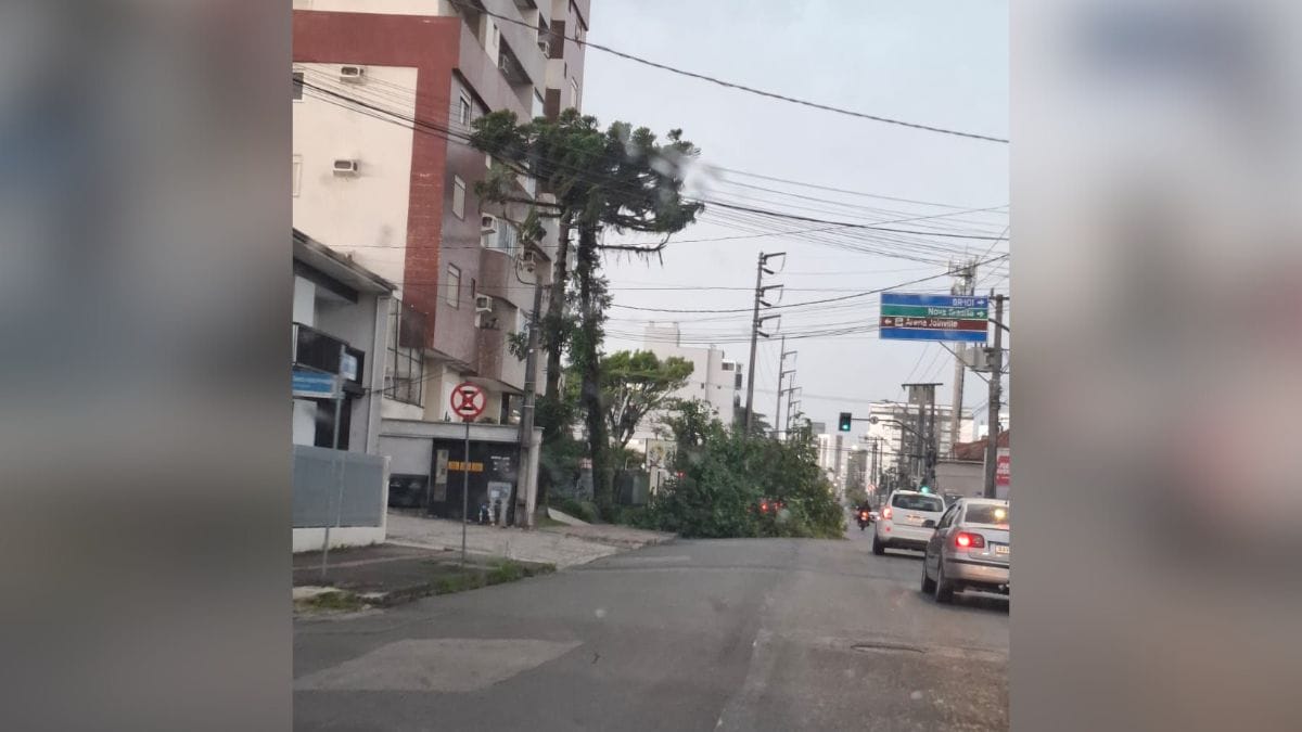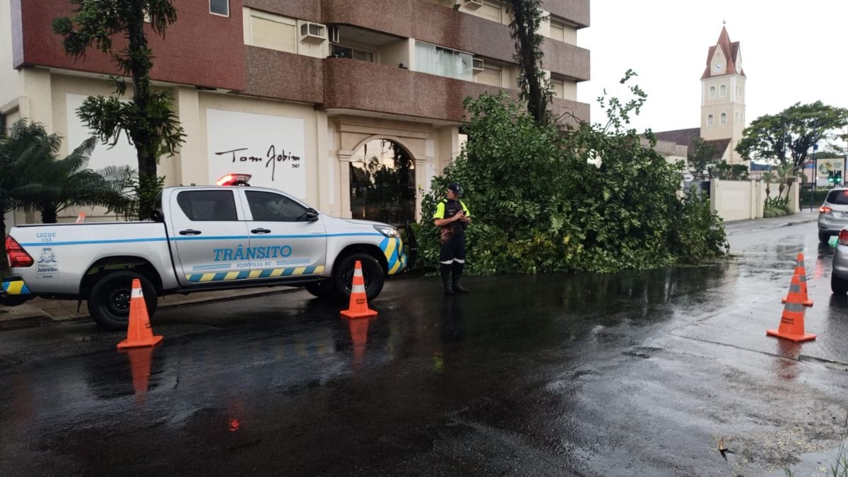 A chuva na maior cidade de Santa Catarina iniciou por volta das 16h desta terça-feira. Até a publicação desta matéria, houve apenas o registro de uma queda de árvore, devido ao forte vento, no bairro Anita Garibaldi.