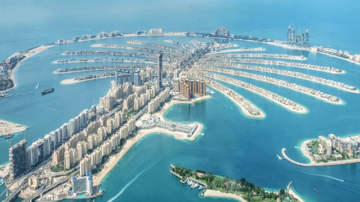A forma de palmeira da Palm Jumeirah em Dubai foi projetada para ser um símbolo de ambição, criatividade e expansão do litoral.