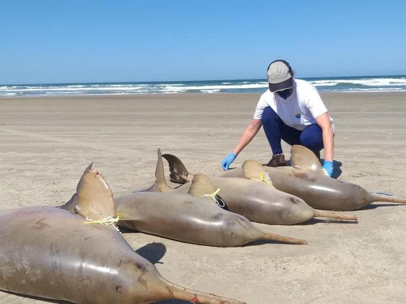 Cinco toninhas, pequenos golfinhos que vivem na costa leste da América do Sul, foram encontradas mortas na tarde desta quarta-feira (9) em Laguna, no Sul de Santa Catarina. Os animais estavam na Praia do Sol, parcialmente enterrados, e uma fêmea estava grávida. Pesquisadores e a Polícia Militar Ambiental chegaram até o local por meio de denúncia anônima.