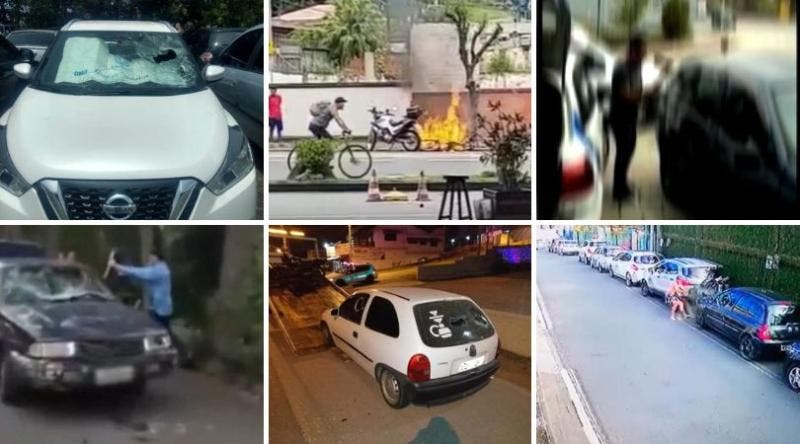 Em poucos minutos, ele atira pedras contra o para-brisas, e arranca os para-choques. O homem acusou a dona do veículo de ter feito com que outro carro batesse no dele enquanto procurava uma vaga para estacionar. O caso foi registrado em novembro de 2020.