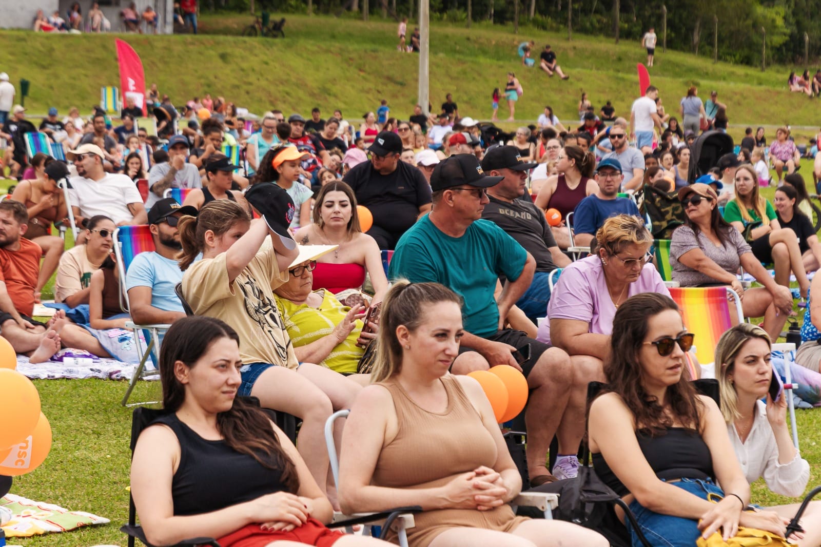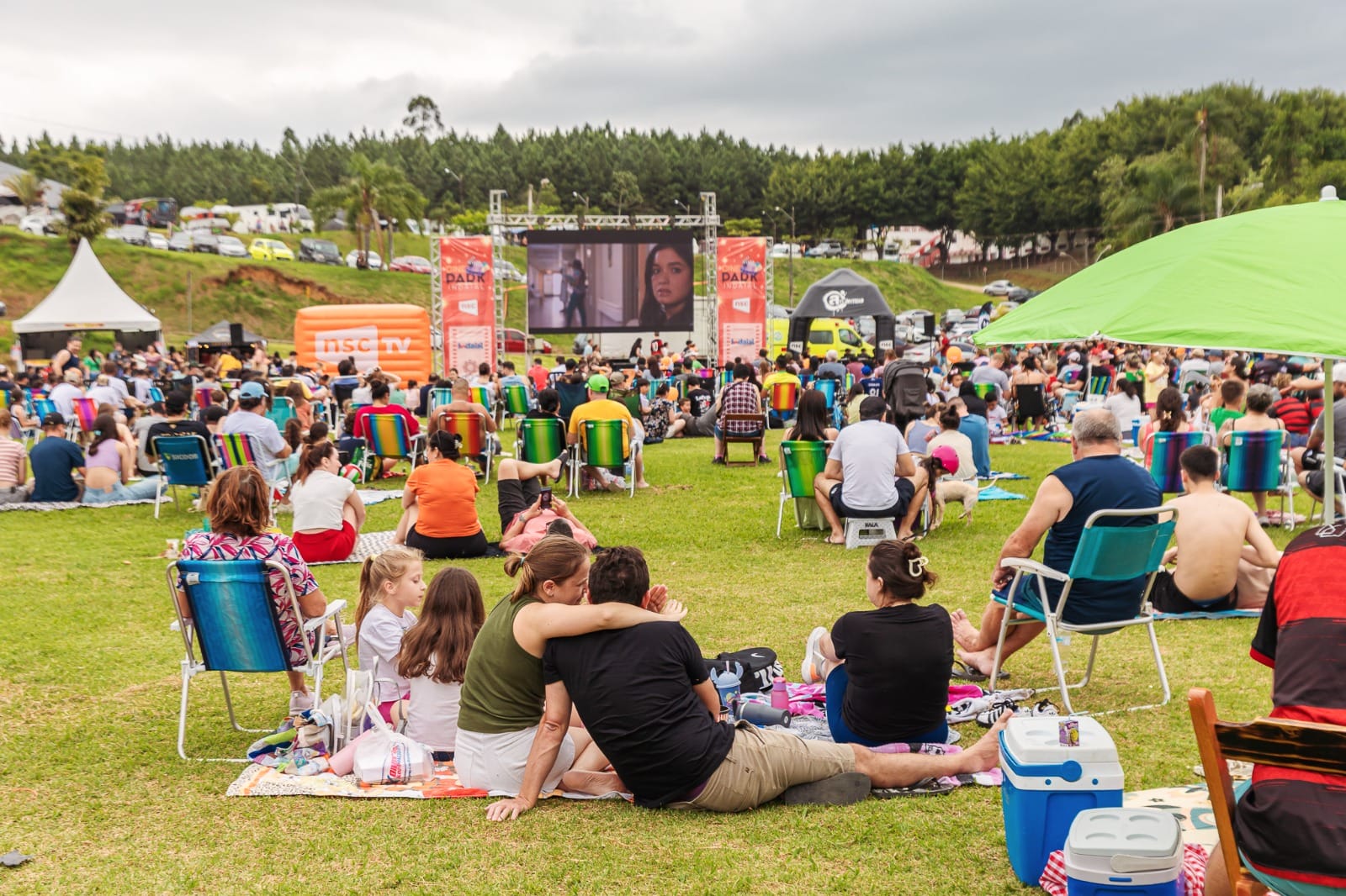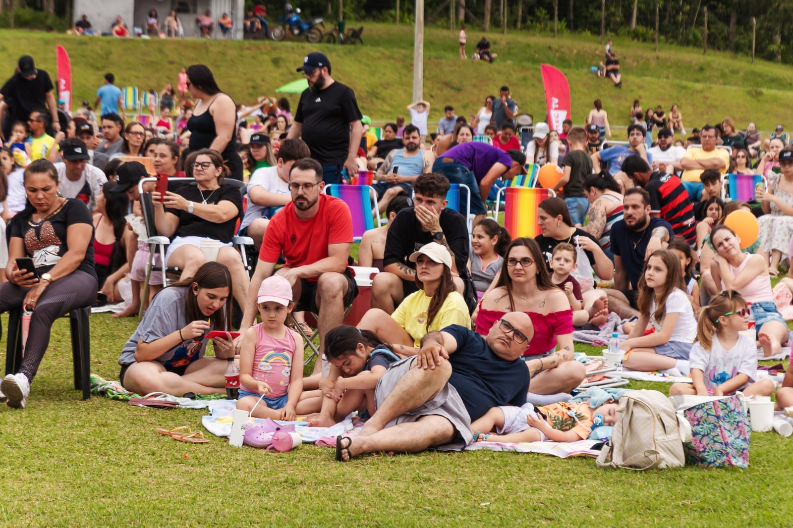 Ao menos 3 mil pessoas passaram pelo Cine Park neste domingo (30), evento da NSC com apoio da prefeitura de Indaial. Com exibição de dois filmes de graça e ao ar livre, adultos e crianças puderam se divertir e curtir o dia no Parque Municipal Jorge Hardt, no bairro Estrada das Areias. O evento teve atividades para as famílias, feirinhas, food truck e até distribuição de pipoca.