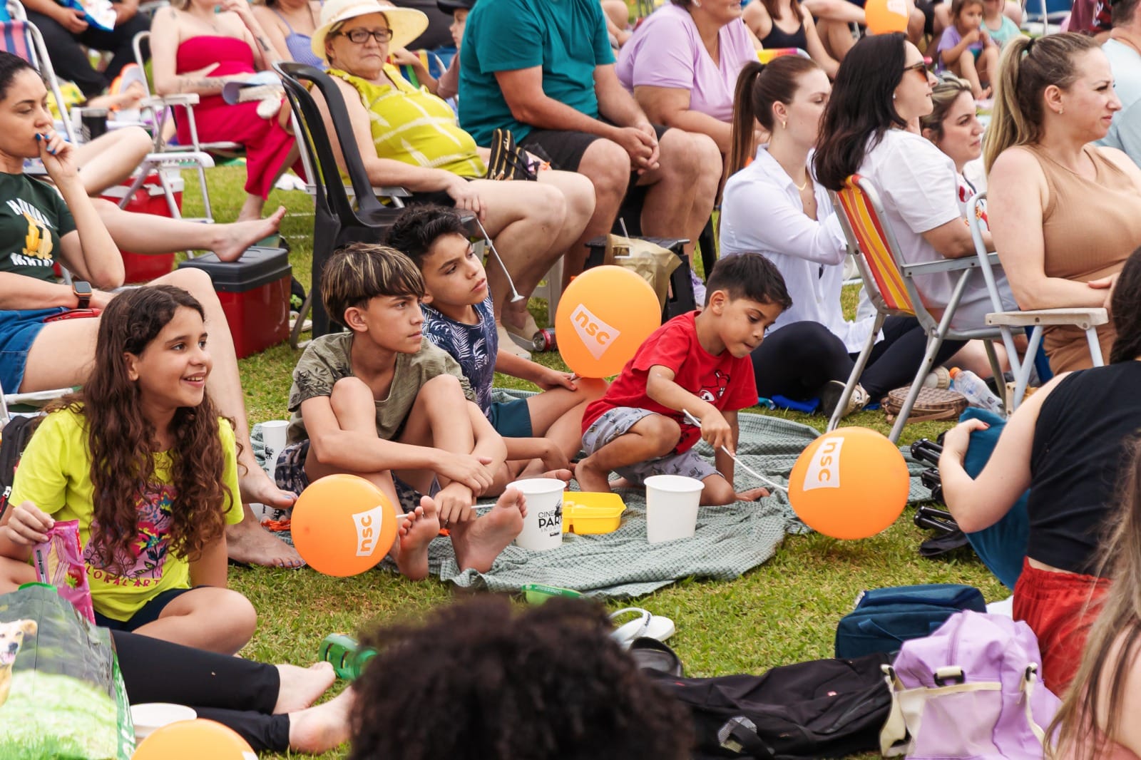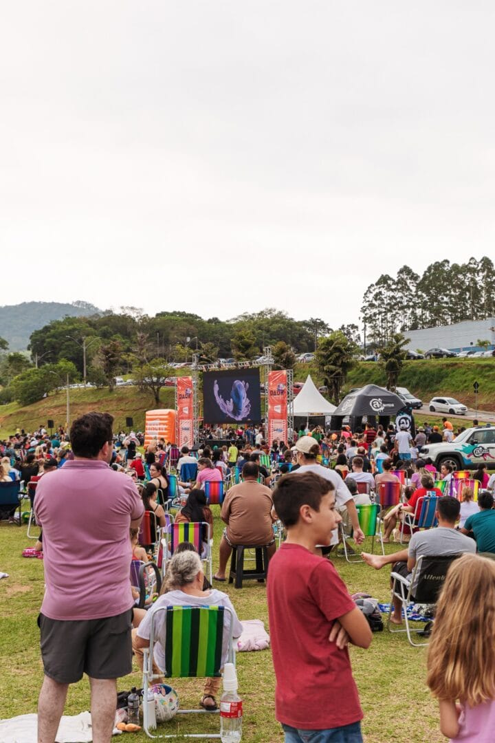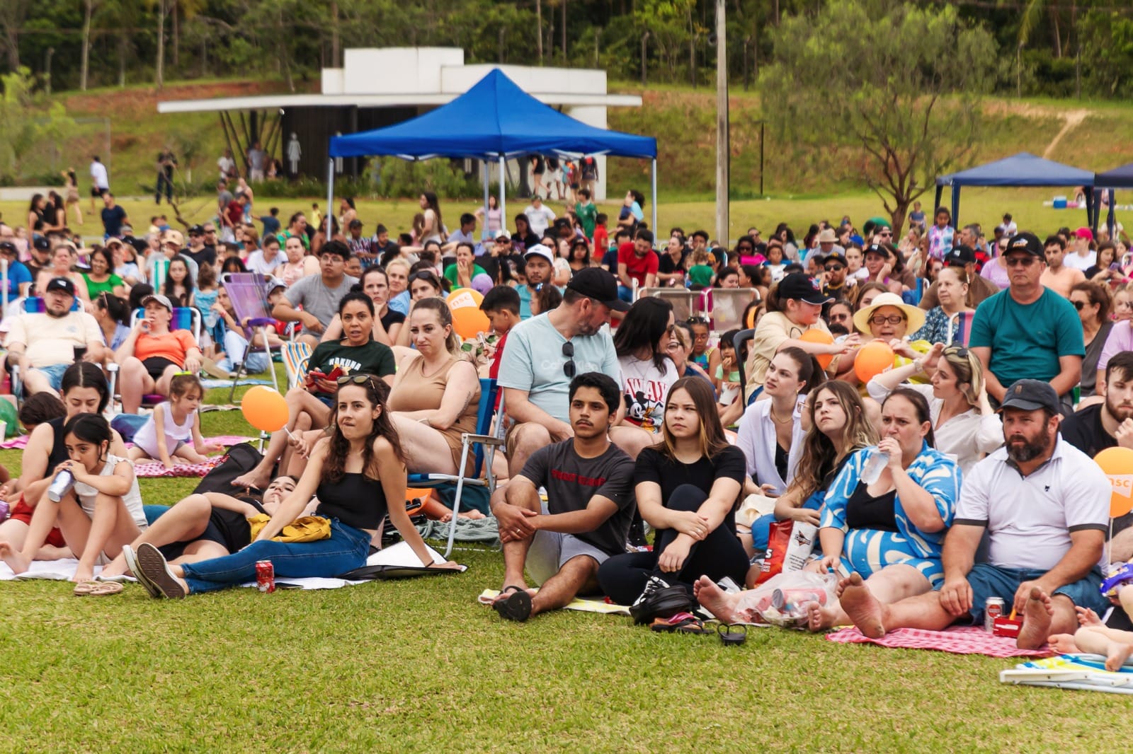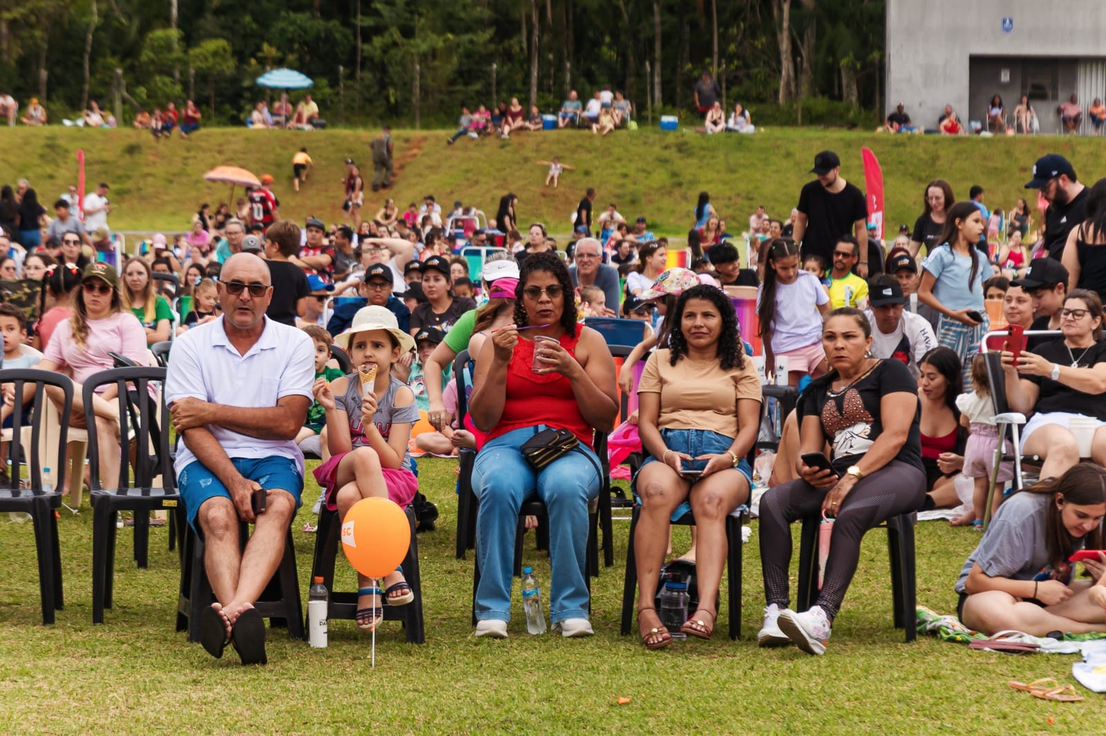 Ao menos 3 mil pessoas passaram pelo Cine Park neste domingo (30), evento da NSC com apoio da prefeitura de Indaial. Com exibição de dois filmes de graça e ao ar livre, adultos e crianças puderam se divertir e curtir o dia no Parque Municipal Jorge Hardt, no bairro Estrada das Areias. O evento teve atividades para as famílias, feirinhas, food truck e até distribuição de pipoca.