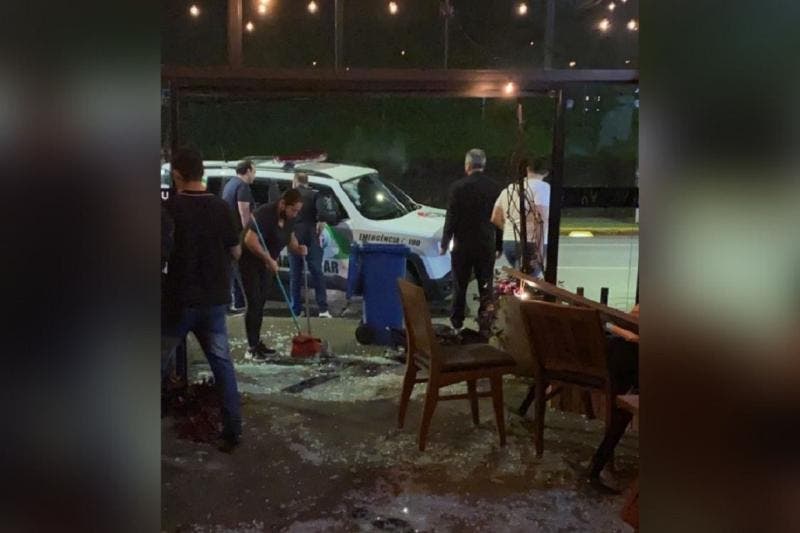 O cliente saiu e retornou ao local com um Fiat Toro, alertando que entraria no estabelecimento com o veículo. Ele acelerou o carro em direção ao bar e colidiu contra a fachada, quebrando o vidro e atropelando um segurança, de 45 anos.