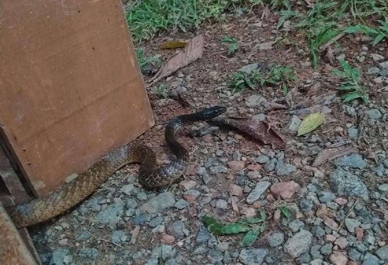 > Cobra come sapo, invade casa e se esconde no banheiro em Jaraguá do Sul; veja vídeo