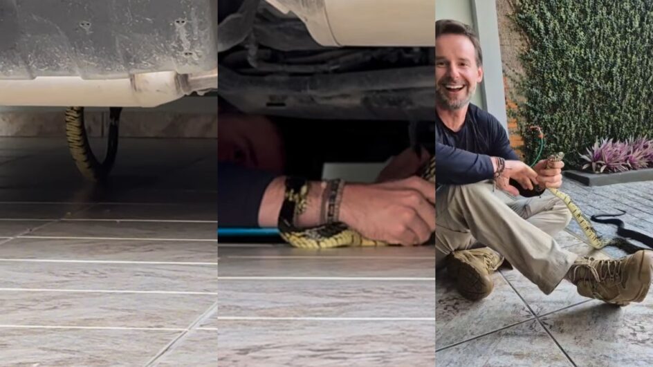 Por conta da força da cobra e para não machucá-la, o especialista deixou que ela entrasse no motor e resolveu tirar ela do local por outra parte do carro. A ideia foi bem sucedida e a serpente acabou sendo resgatada.