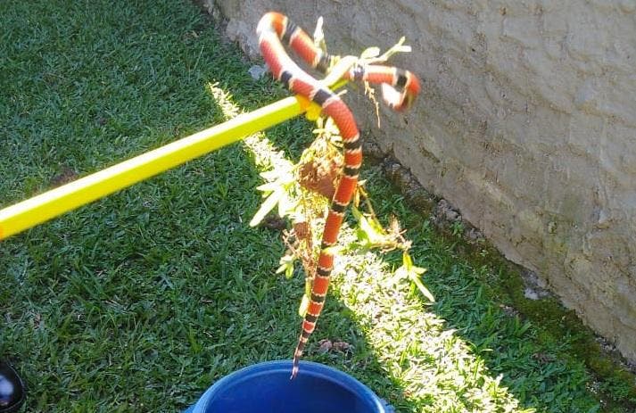 Os pets não foram picados e a serpente foi levada e solta em uma região de mata. De acordo com os bombeiros, era uma cobra-coral verdadeira, muito perigosa. O veneno dela age no sistema nervoso.