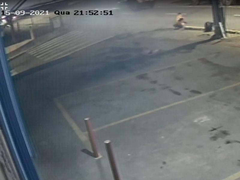 As câmeras de segurança de um estabelecimento registraram o momento em que o caminhão da Ambiental estaciona do lado direito da rua e Anderson atravessa a via para coletar o lixo e, quando vai cruzar a Santa Catarina novamente, em direção ao caminhão, é atingido por um carro e arremessado para cima da calçada.