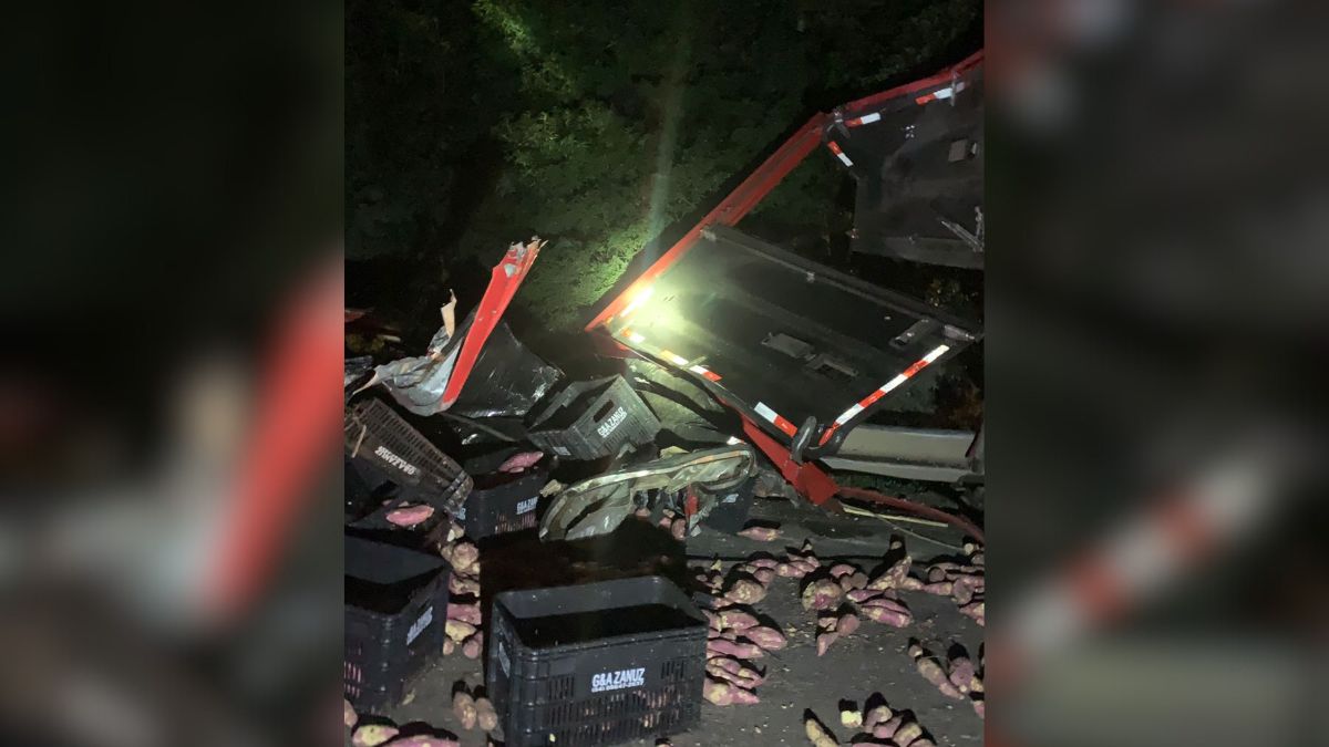 O acidente envolveu um caminhão Ford/Cargo 1119, com placas de Rio Rufino (SC), e um Mercedes-Benz L 1620, com placas de Caxias do Sul (RS).