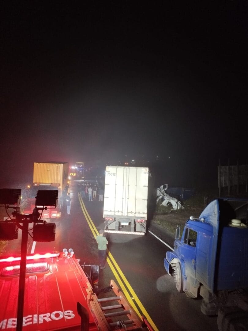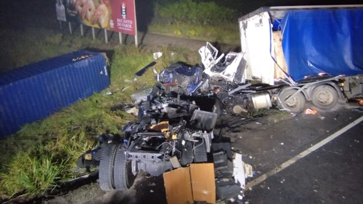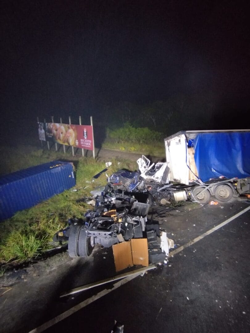 Um grave acidente na SC-416, em Itapoá, perto de Garuva, matou um caminhoneiro na noite de quarta-feira (18). O caminhão dele bateu de frente com outro, destruindo os veículos e mobilizando as equipes de socorro.