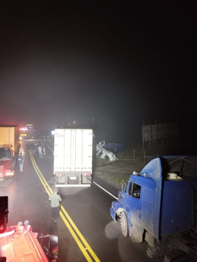 No outro caminhão, o motorista também estava preso às ferragens, mas com gravidade maior. Ele estava consciente, mas com múltiplas fraturas nas pernas. Desorientado, durante o atendimento ficou inconsciente e foi levado em estado crítico à UPA. Na sequência, o óbito foi informado.
