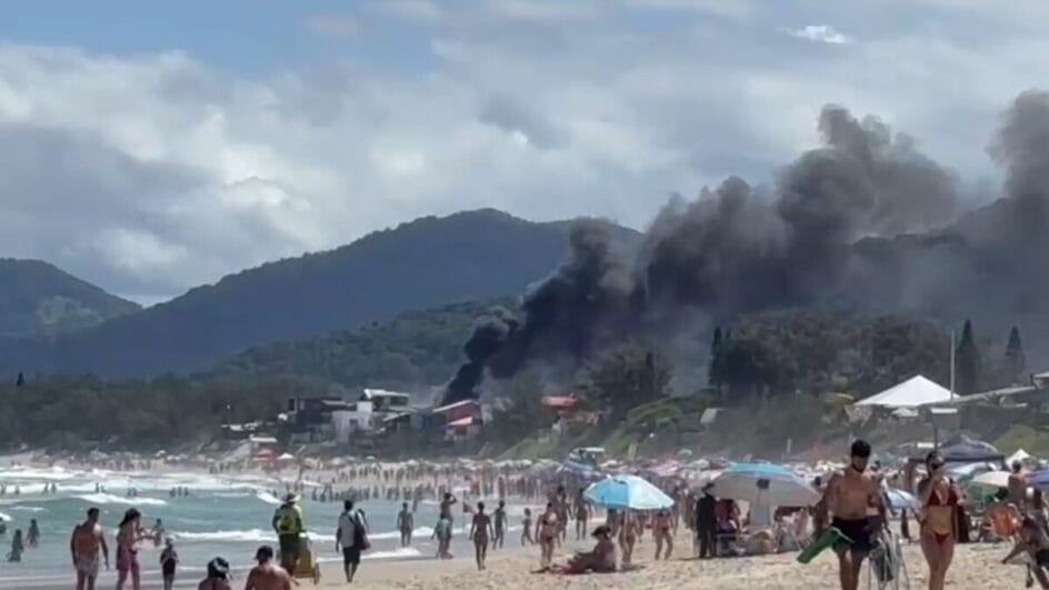Um incêndio atingiu uma casa de dois andares na rua Aroeira do Campo, perto da Lomba do Sabão, na Praia do Campeche, em Florianópolis, na tarde deste sábado (24). Imagens feitas por uma banhista registram a fumaça densa e escura vista da beira da praia.