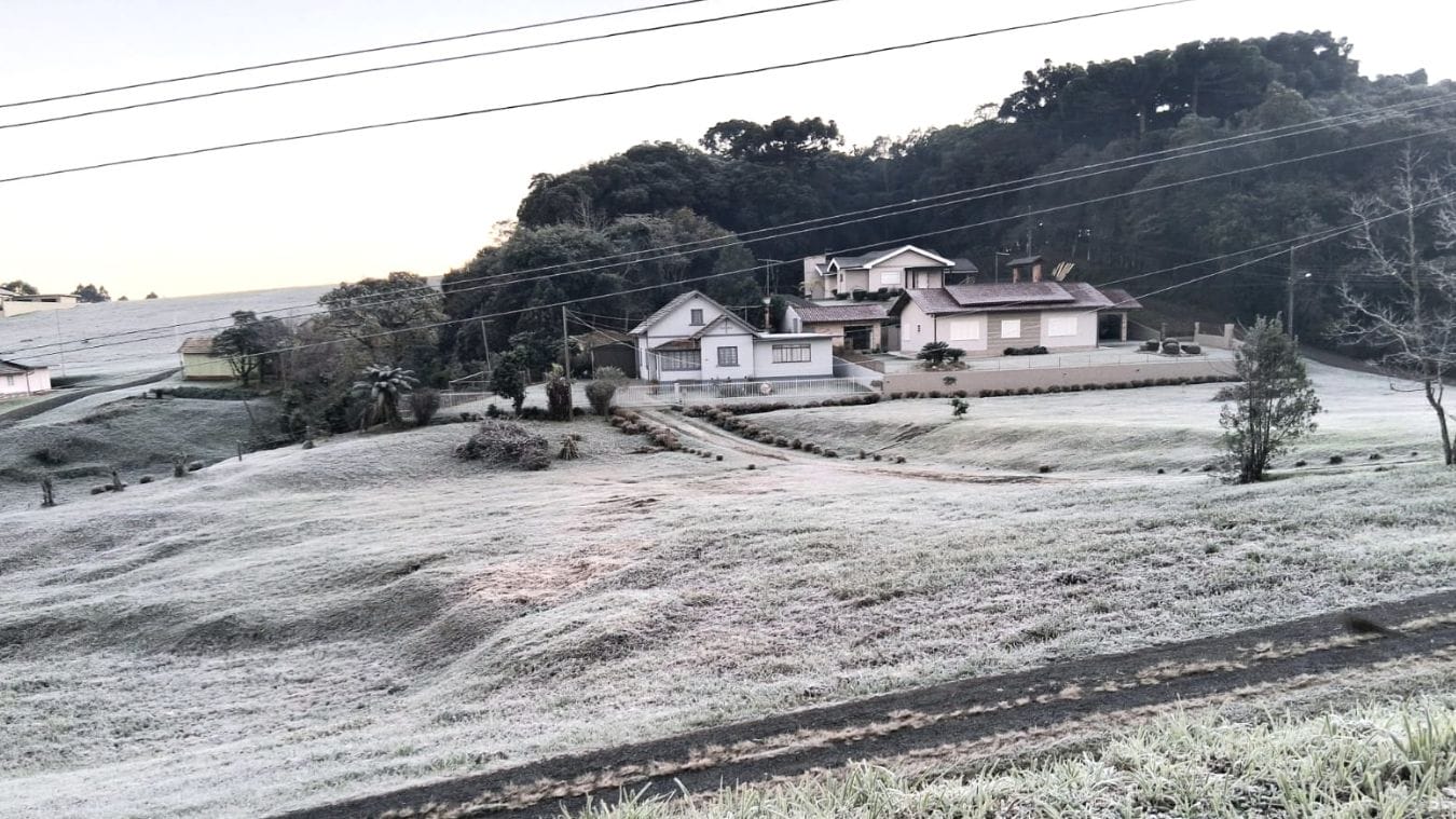 Quem acordou cedo na manhã desta quarta-feira (25) no Planalto Norte de Santa Catarina teve uma surpresa ao encontrar a paisagem coberta por geada. Os cristais vieram acompanhados das baixas temperaturas. Canoinhas, por exemplo, chegou a registrar -4,3ºC. Segundo a Defesa Civil, esta é a segunda vez que a região registra geada neste ano.