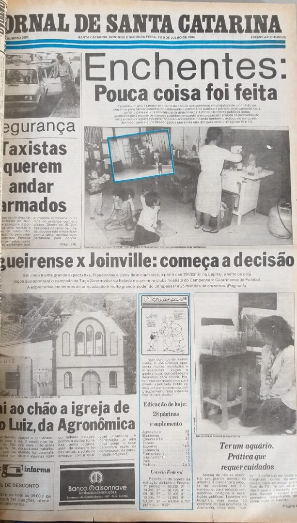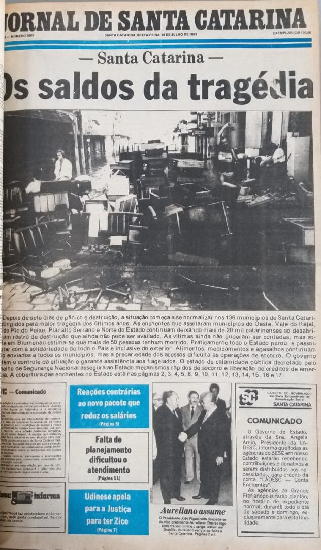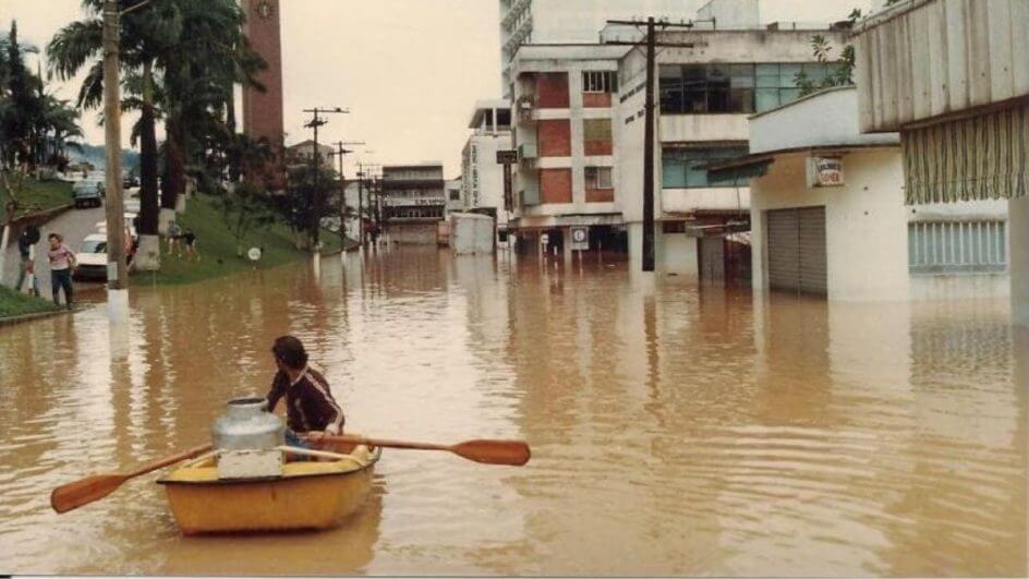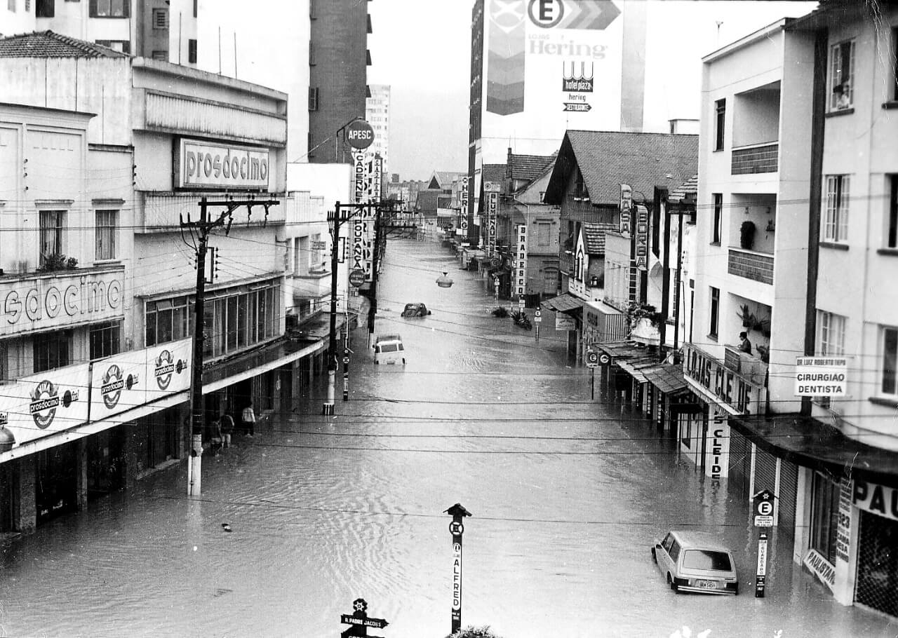 1983: em julho daquele ano, cinco dias de chuvas intensas fizeram o Rio Itajaí-Açu subir mais de 15 metros, inundando 90 municípios, entre eles Blumenau, Itajaí e Rio do Sul. Ao todo, foram 49 mortes e aproximadamente 198 mil desabrigados, conforme a Defesa Civil do Estado de Santa Catarina.