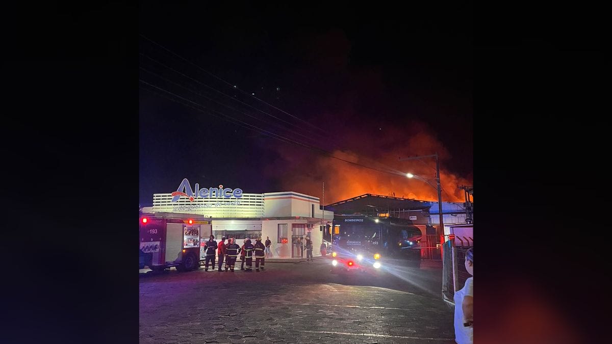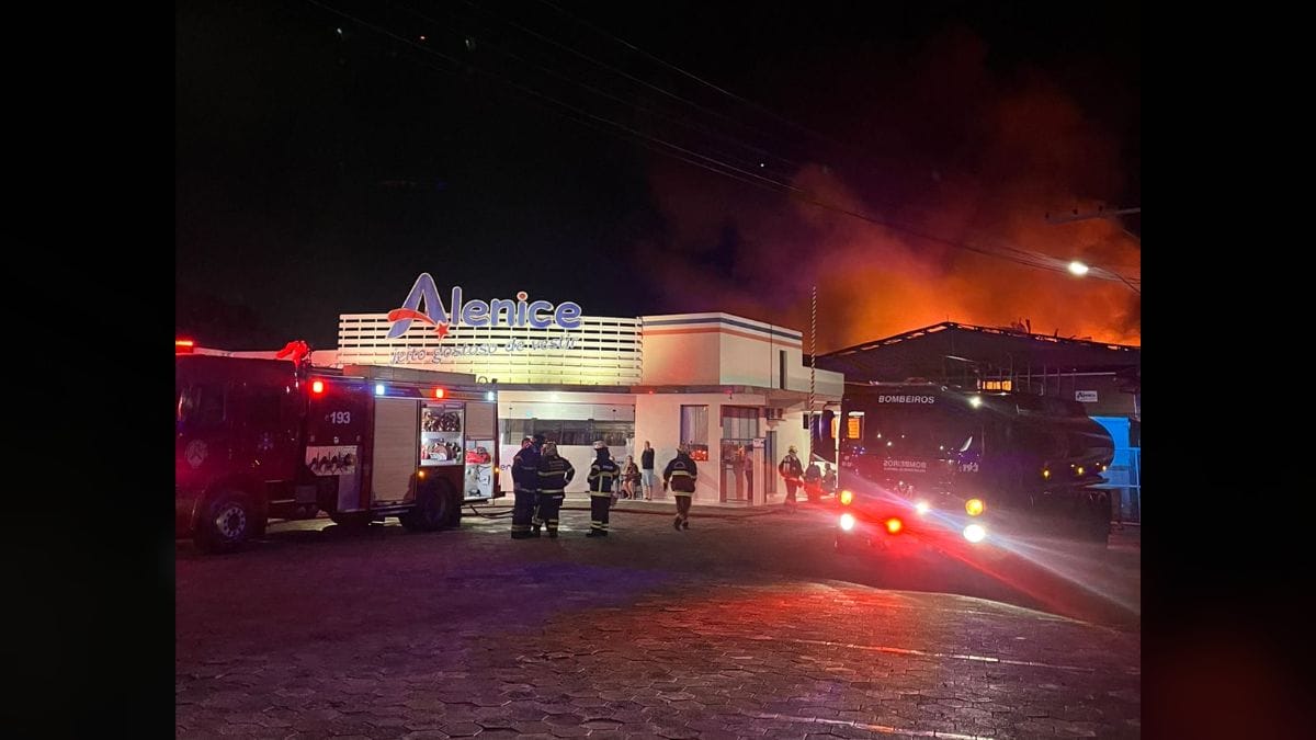 Uma fábrica de roupas de Guaramirim, no Norte catarinense, foi atingida por um incêndio durante a madrugada de sábado (31). As chamas gigantescas chamaram a atenção das pessoas que moram no entorno, que registraram a ocorrência em fotos e vídeos. Durante a manhã, mesmo horas depois do início do fogo, bombeiros da cidade e da região ainda trabalhavam para conter o incêndio.