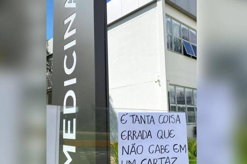 A estudante diz que o curso de medicina abriu recentemente em Mafra e a primeira turma se formará neste ano. Atualmente, cerca de 50 alunos — que estudam em semestres diferentes —, estão matriculados no curso e, portanto, sofrem com a situação.