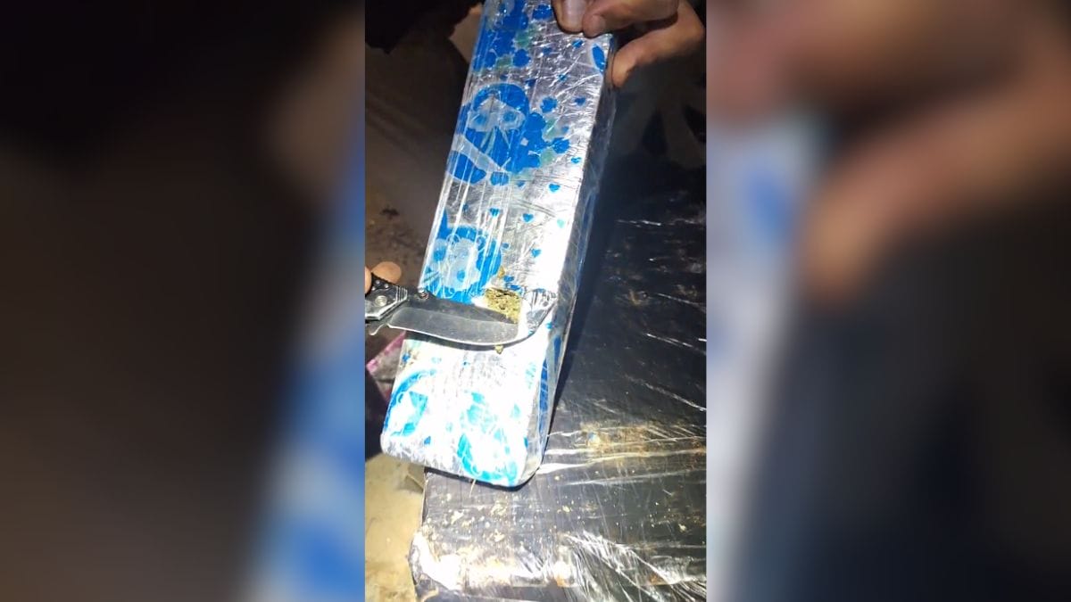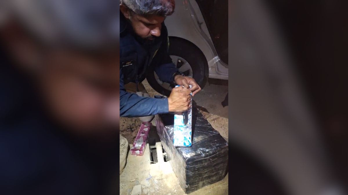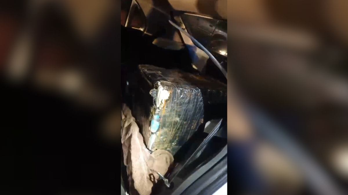No interior do carro, foram encontrados 209 quilos de maconha, divididos em grandes pacotes. Além da droga, os agentes constataram que o veículo utilizava placas falsas e apresentava sinais de adulteração.