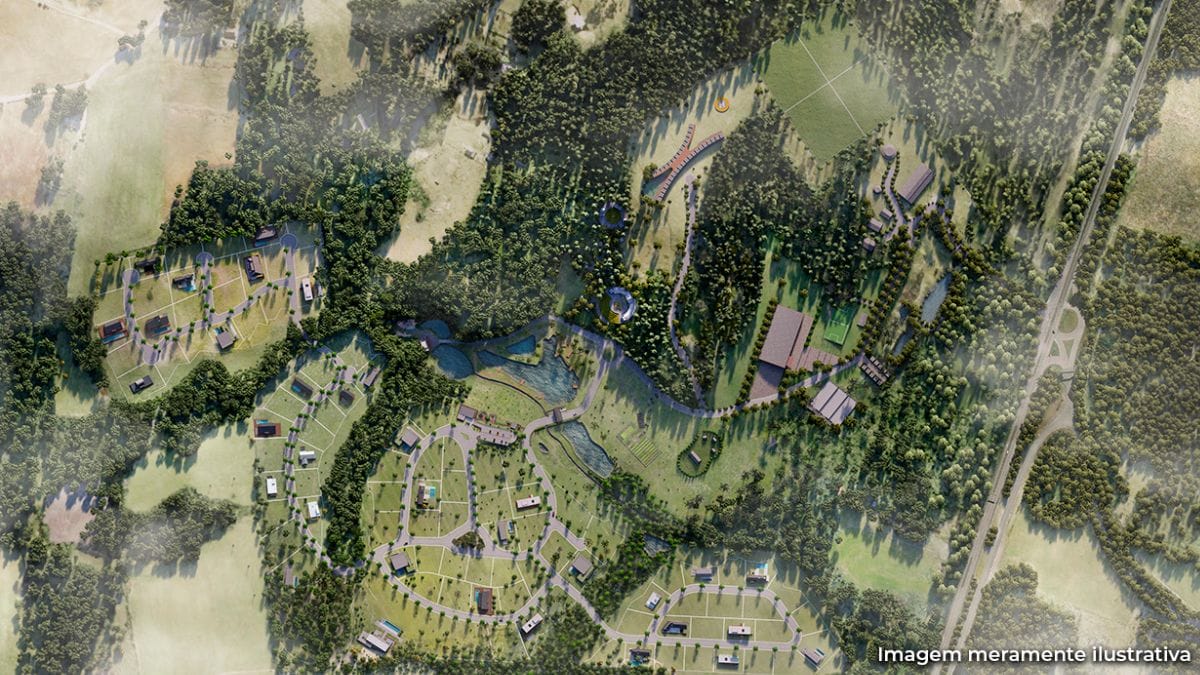 O empreendimento restringe a oferta a 100 terrenos de 1.200 a 3.250 metros quadrados, inseridos em uma área de 563 mil metros quadrados em meio à natureza. A estrutura integra piscinas naturais, trilhas e restaurante panorâmico.