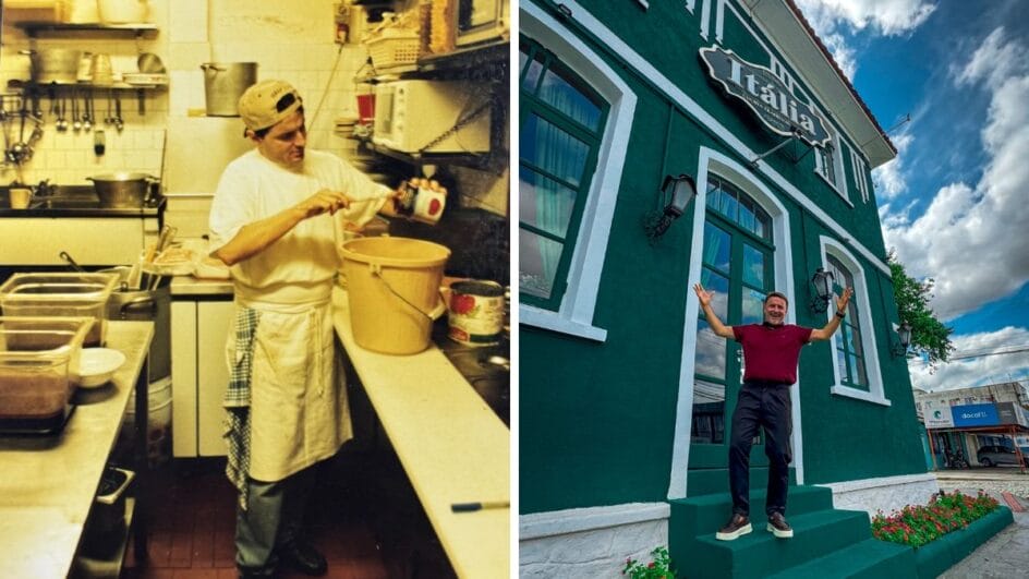 — Eu fui para Milão, na Itália, me aventurar e fiquei o primeiro ano desempregado. Aí, via que a possibilidade de trabalhar em um restaurante era muito boa, porque eu ia ter duas refeições por dia já pagas. E a outra coisa que me instigou foi que, por exemplo, fazia chuva ou sol, eu recebia. Porque quando eu trabalhava de ajudante de pedreiro ou terceirizado, só me chamavam quando dava tempo bom. Então eu comecei lavando pratos em Milão, no restaurante — explica sobre o início da sua jornada.