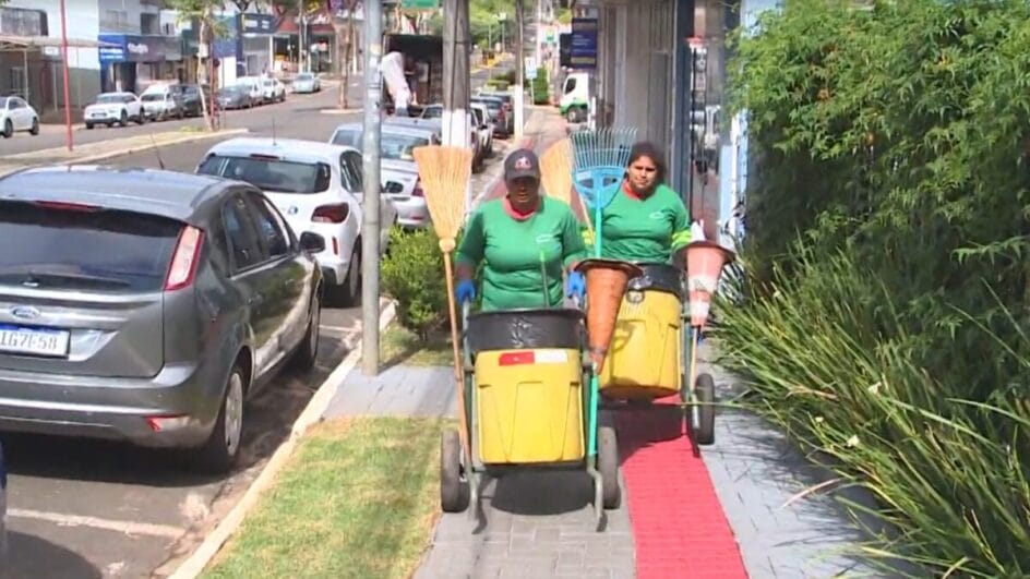 Ingrid Rodrigues e Dejanira de Fátima dos Santos começam cedo. Às 7h da manhã, já estão no centro da cidade realizando a limpeza de lixeiras, recolhimento de resíduos e organização dos espaços públicos. Um serviço cansativo, feito sob sol forte e altas temperaturas, mas indispensável para o bom funcionamento da cidade.