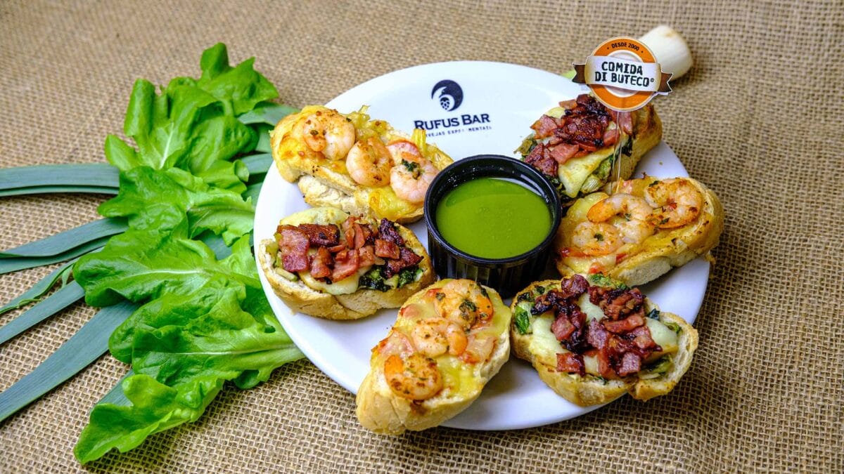 - Verdusquetas: mini brusquetas com escarola e bacon, cobertas com provolone, alho-poró, tomate, camarões salteados e muçarela. Acompanha pesto de rúcula.