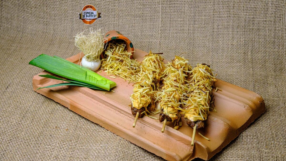 - Spetonoff ao Poró: espetinho de carne bovina com molho de strogonoff, coberto com crispy de alho-poró e batata palha.