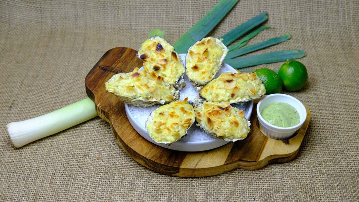- Ostra Real: ostras frescas gratinadas com molho de alho-poró e creme de queijos, finalizadas com lâminas de amêndoas crocantes.