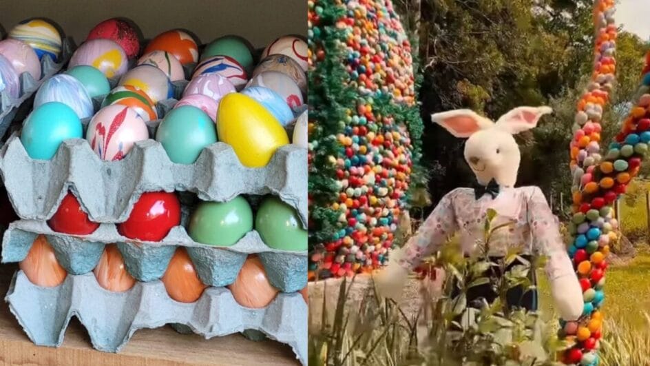 Segundo os organizadores, 115 mil ovos decorados compõem a árvore da Osterfest 2025.