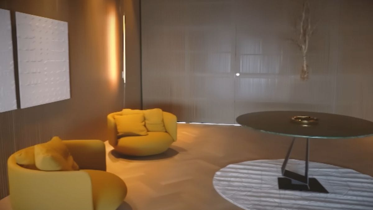 Sala de estar aconchegante com poltronas amarelas e design minimalista. (Foto: Reprodução, YouTube, Casa Vogue)