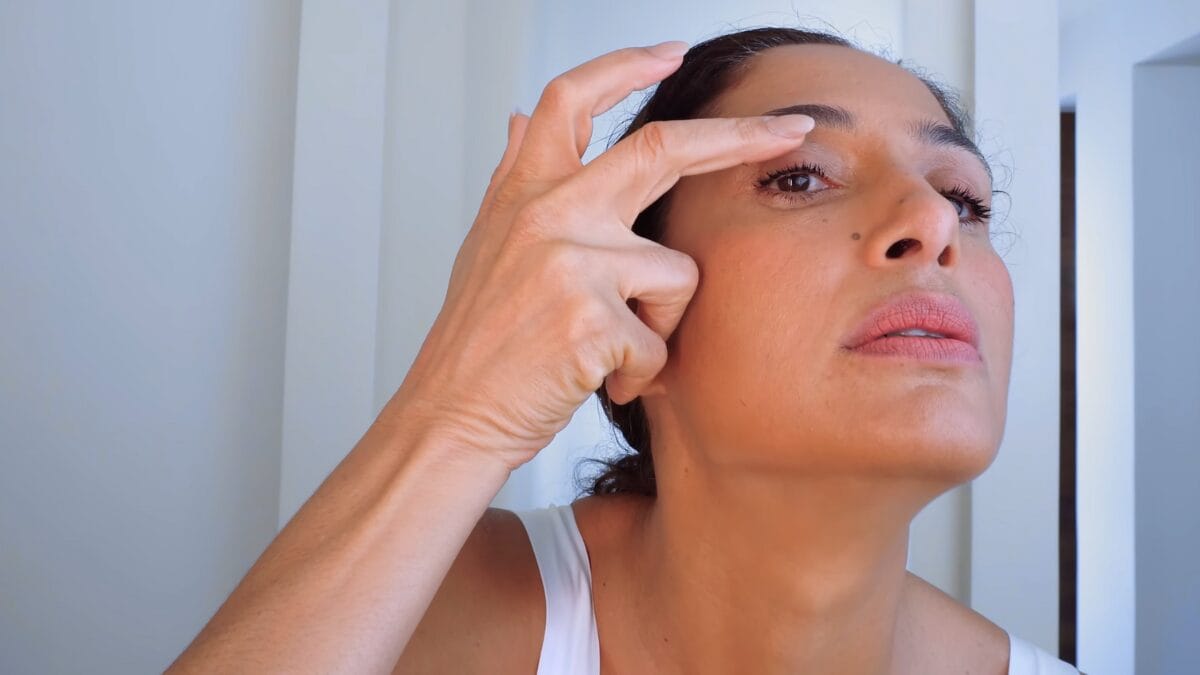 — Uma pele mais madura precisa de hidratação. Precisamos dar alimento para ela — continua. O sérum para os olhos Exalted Eye Serum, da Aesop, e borrifadas da bruma facial hidratante Água de Beleza, da Caudalie, completam o cuidado inicial.