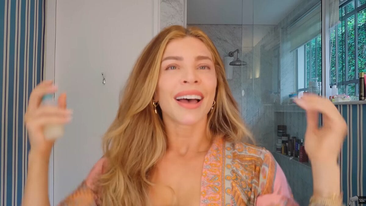 Nos cuidados com o cabelo, Grazi adota uma estratégia prática para criar ondas sem fontes de calor: ela aplica óleo capilar antes do treino físico e, após a lavagem, utiliza leave-in e prende os fios ainda úmidos com presilhas.