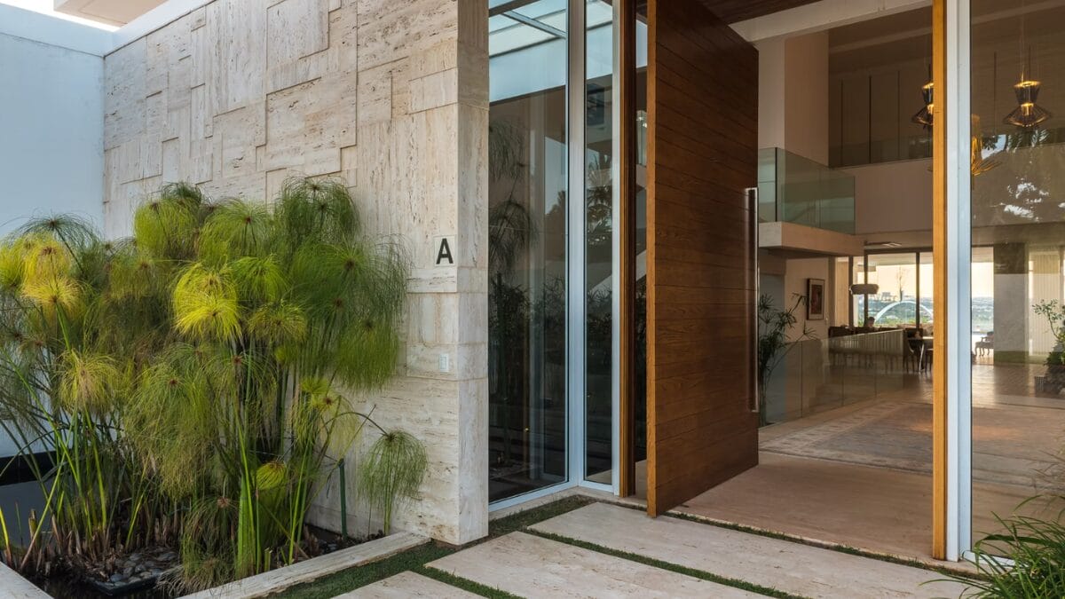 Com uma estética de linhas limpas e materiais nobres, a entrada da casa possui um pé-direito duplo e um espelho d’água atravessado por uma passarela de vidro suspensa. Segundo o studioHub, a infraestrutura é voltada para o entretenimento e o bem-estar, incluindo: