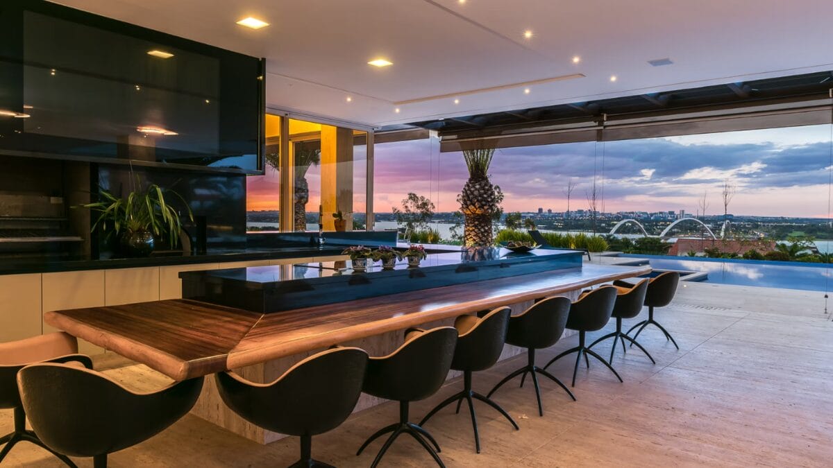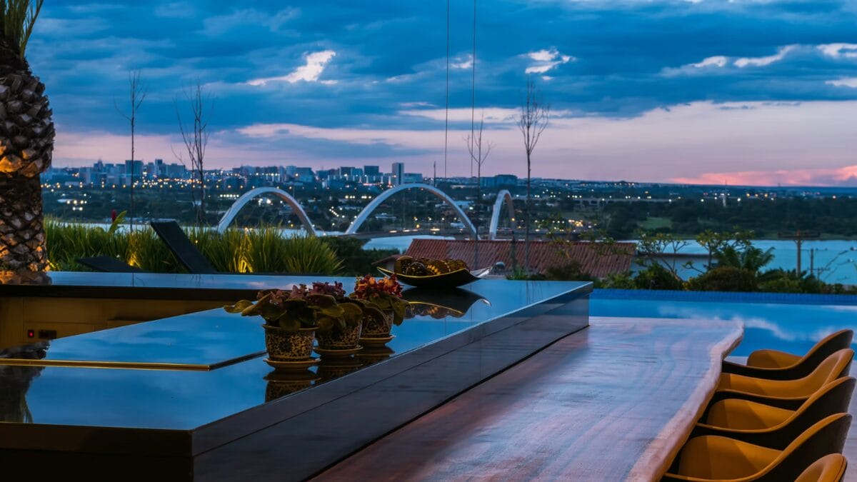 Segundo o escritório studioHub, responsável pelo projeto, o espaço prioriza a integração visual com o Lago Paranoá, principal cartão-postal de Brasília, garantindo uma vista panorâmica de quase todos os cômodos.