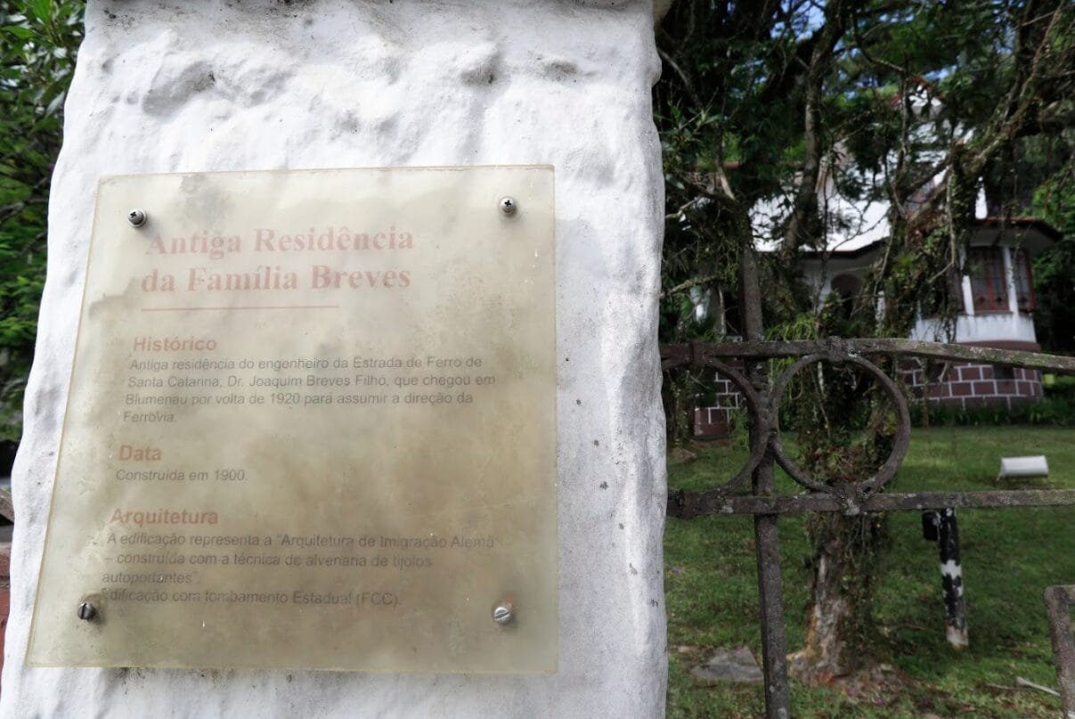 Uma placa diante da casa tombada informa os curiosos: a propriedade pertenceu em 1920 a Joaquim Breves Filho, um engenheiro carioca que veio ao município para assumir o comando da construção da Estrada Ferroviária de Santa Catarina. Porém, cerca de dez anos depois, o dono já era outro. Oscar Barcellos, engenheiro e militar que também se mudou do Rio de Janeiro para atuar no planejamento da ferrovia catarinense, adquiriu o terreno de 19,6 mil metros quadrados.