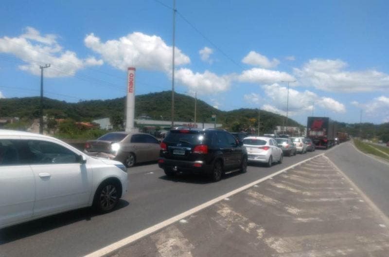 14h30 – O trânsito está com lentidão no trecho próximo ao Instituto Federal Catarinense (IFC). Há registro de fila na região porque que há a convergência dos motoristas que acessam o trecho pelo Itinga e também daqueles que chegam pela BR-101. O trânsito não chega a estar parado, segundo a Polícia Rodoviária Federal (PRF). Após o trecho do IFC, o trânsito está fluindo.