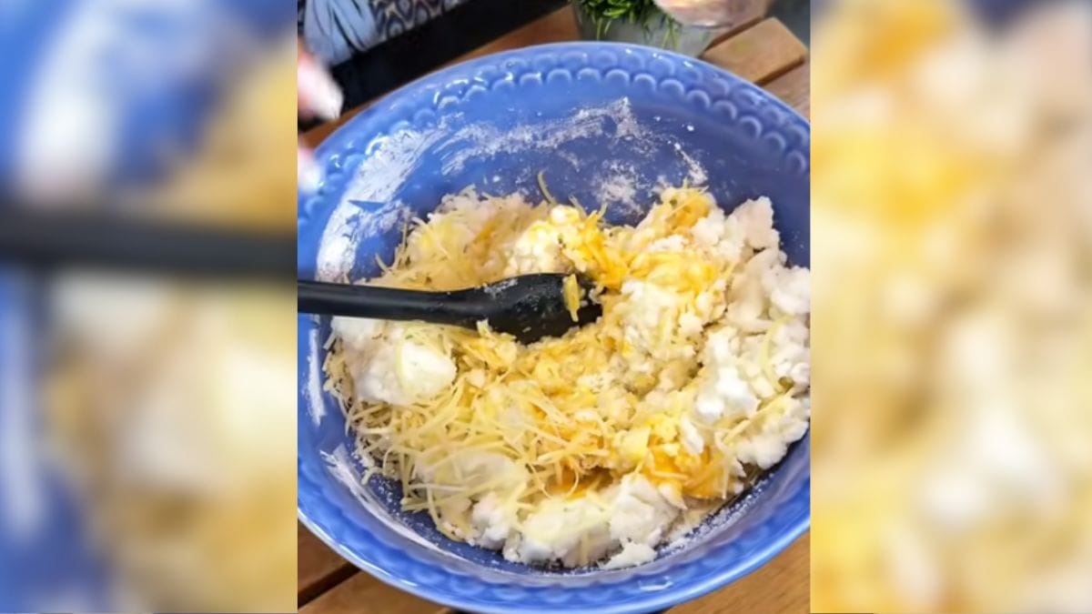Em outro recipiente, misture o polvilho azedo, o sal e a mistura que estava reservada. Misture bem e deixe descansar por 10 minutos. Agora, adicione os ovos, o parmessão ralado e mexa novamente.