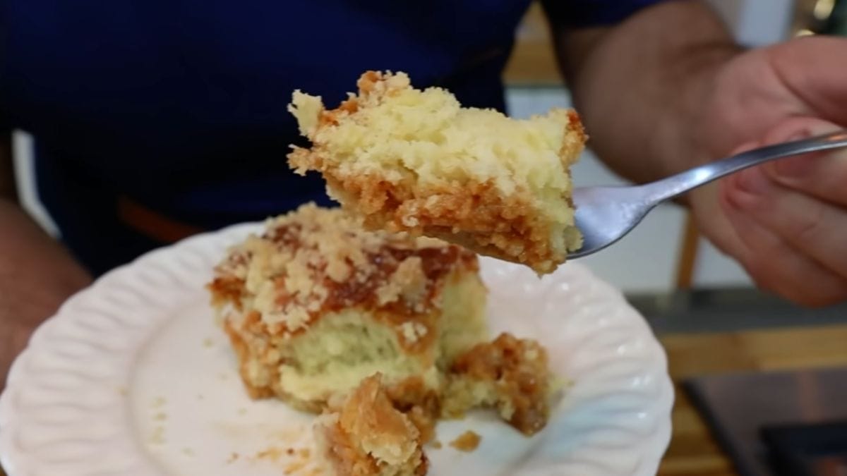 Para deixar a cuca mais fofinha, bata bem os ovos com o açúcar até ficarem esbranquiçados e cremosos, e use ingredientes na temperatura ambiente, como leite e manteiga amolecida, para incorporar mais ar na massa.