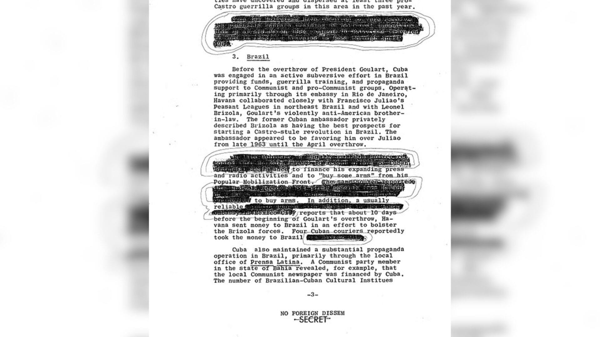Datado em dezembro de 1963, um memorando revelava que os Estados Unidos planejava ações de influência na América Latina para conter o avanço de grupos alinhados a Cuba.