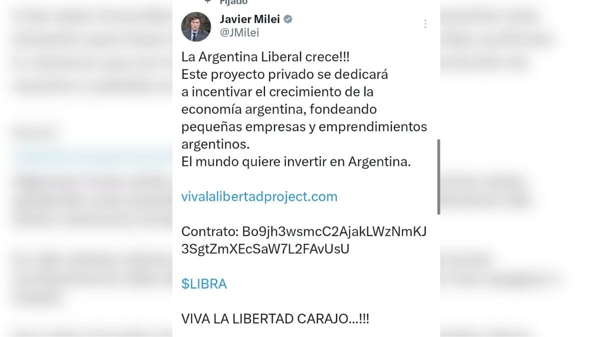 A situação teve origem quando Milei fez uma publicação em uma rede social divulgando a criptomoeda $LIBRA, afirmando que o ativo iria incentivar o crescimento da Argentina e deixando um link para quem quisesse investir na nova moeda. “A Argentina Liberal cresce. Este projeto privado se dedicará a incentivar o crescimento da economia argentina, financiando pequenas empresas e empreendimentos argentinos. O mundo quer investir na Argentina”, escreveu o presidente.
